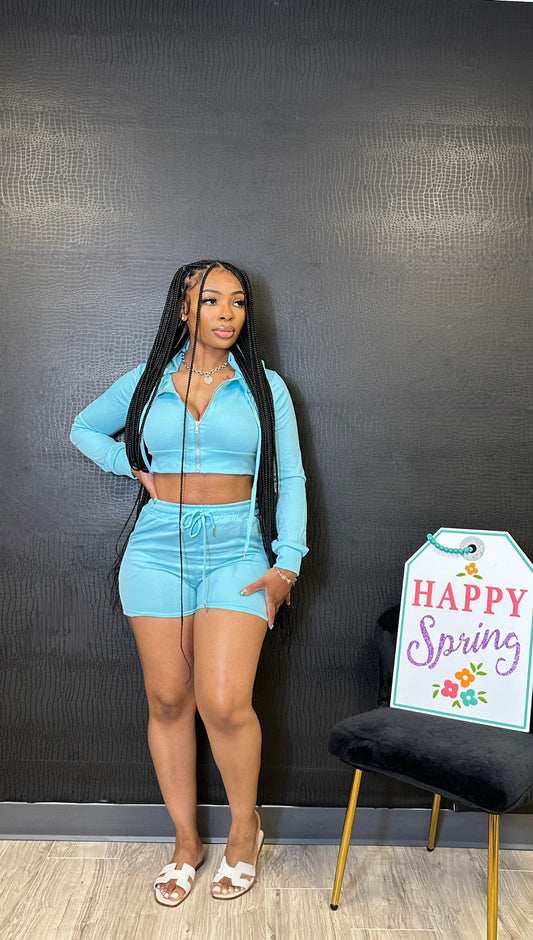 “Tease Me Baby” Blue Short Set